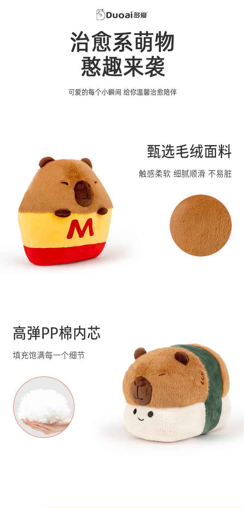 Genuine Capibala Cute Sushi Fries Capybara Plush Toy Doll Soft Throw Pillow Birthday Gift